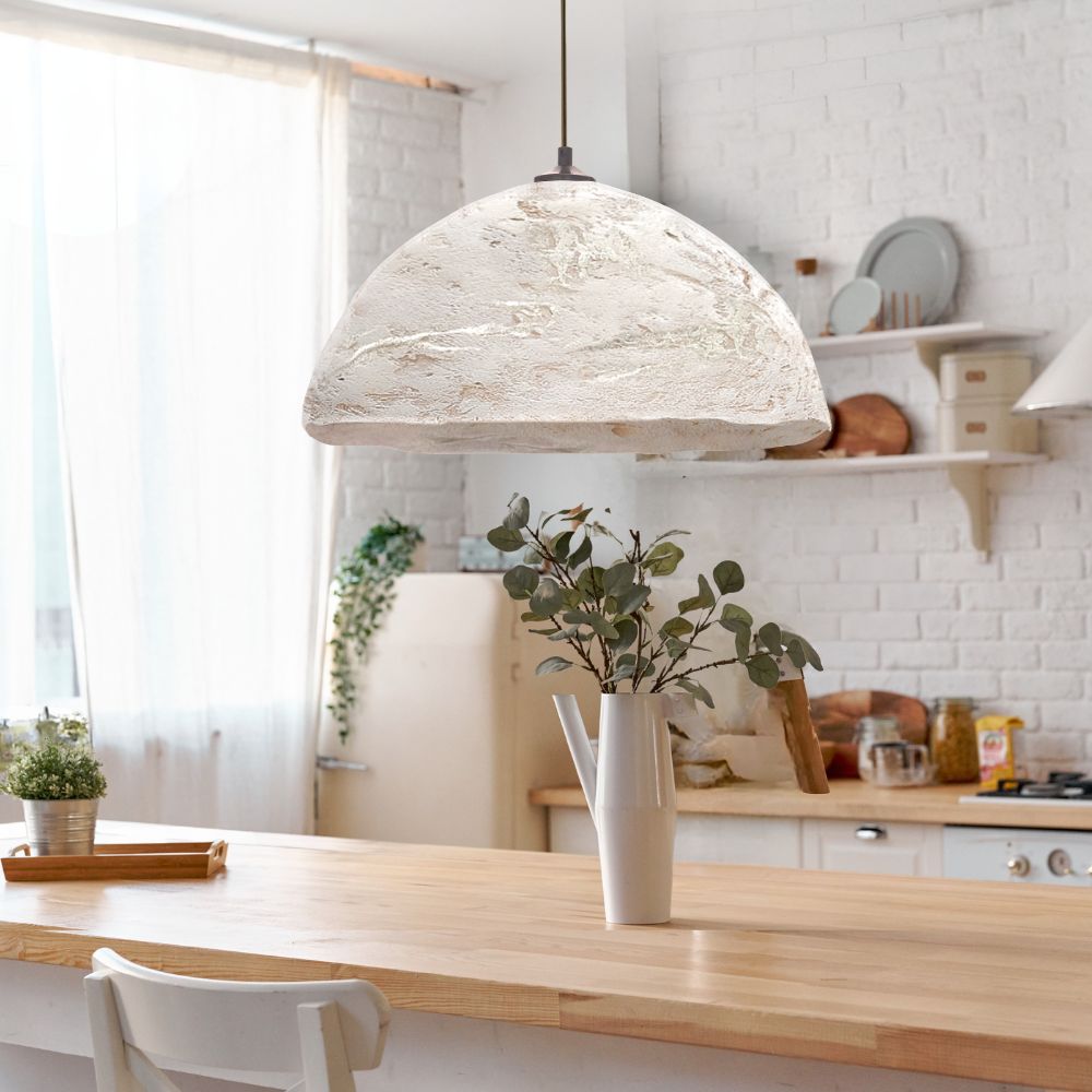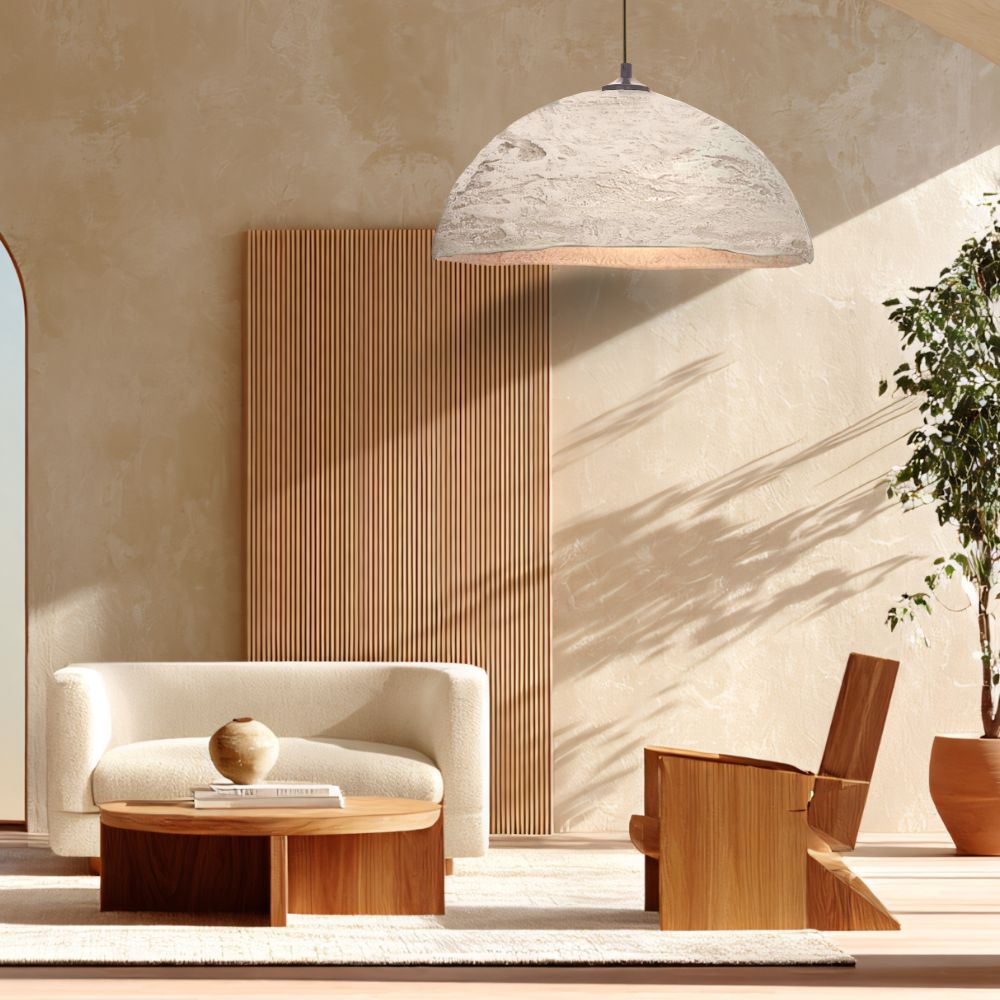 גוף תאורה אבן טבעית, מפוסל בעבודת יד מבטון במראה אבן טבעית מגולפת. המנורה מתאפיינת בטקסטורת אבן אותנטית מבחוץ ומבפנים, לצד צורניות עדינה ודקיקיה, כך שמתקבל גוף תאורה ייחודי במראה אלגנטי ואומנותי כשל פסל תלוי.