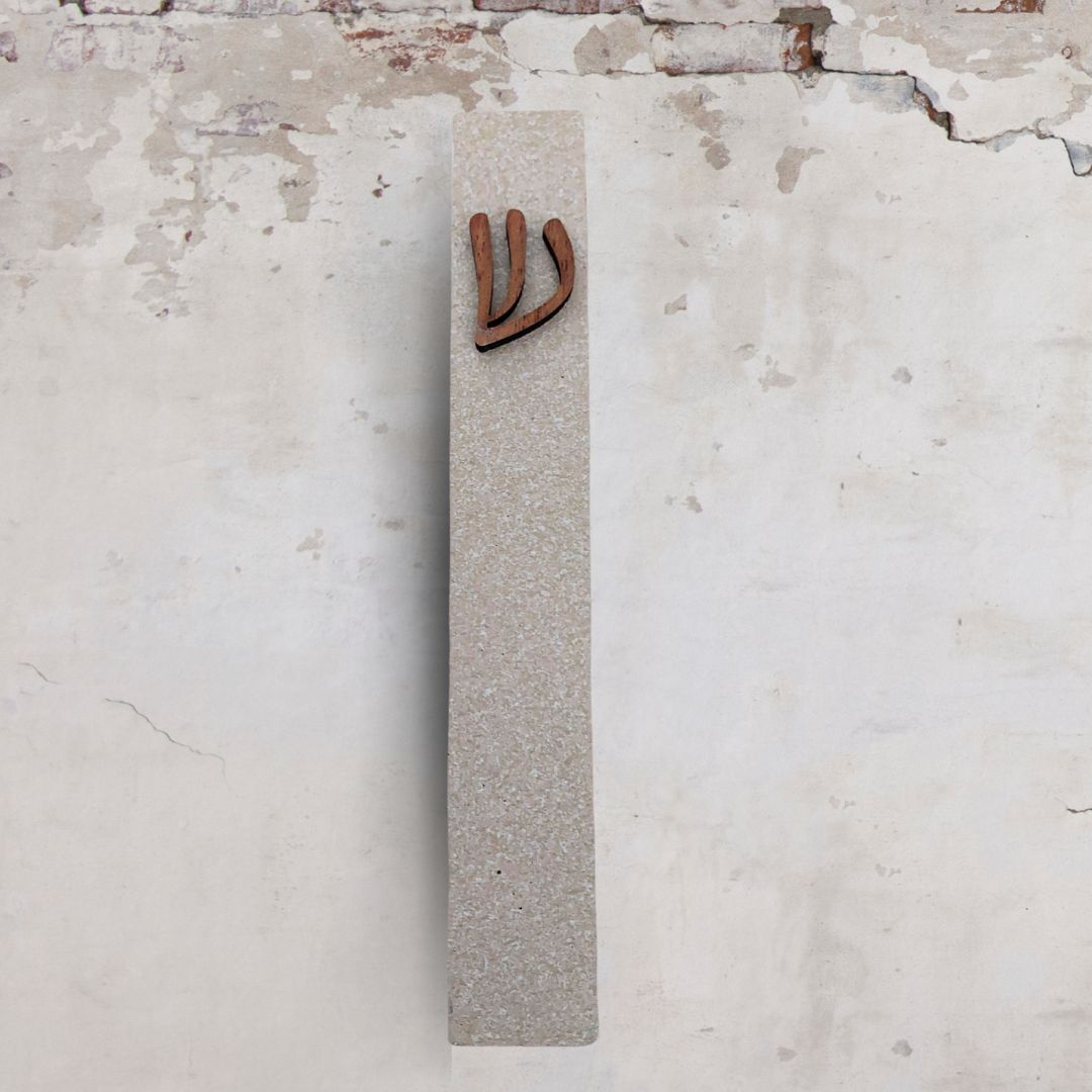 מזוזת בטון מגורען בגוון אבן. המזוזה מעוצבת בעבודת יד מבטון במראה נקי ואלגנטי ומגיעה עם דבק דו צדדי בשני גדלים לבחירה: בית מזוזה 20 מתאים לקלף בגודל 12-17 ס"מ, בית מזוזה 17-מתאים לקלף 10-14 ס"מ (להתאמת מזוזה ולבחירת גודל כנסו לדף שאלות ומאמרים)